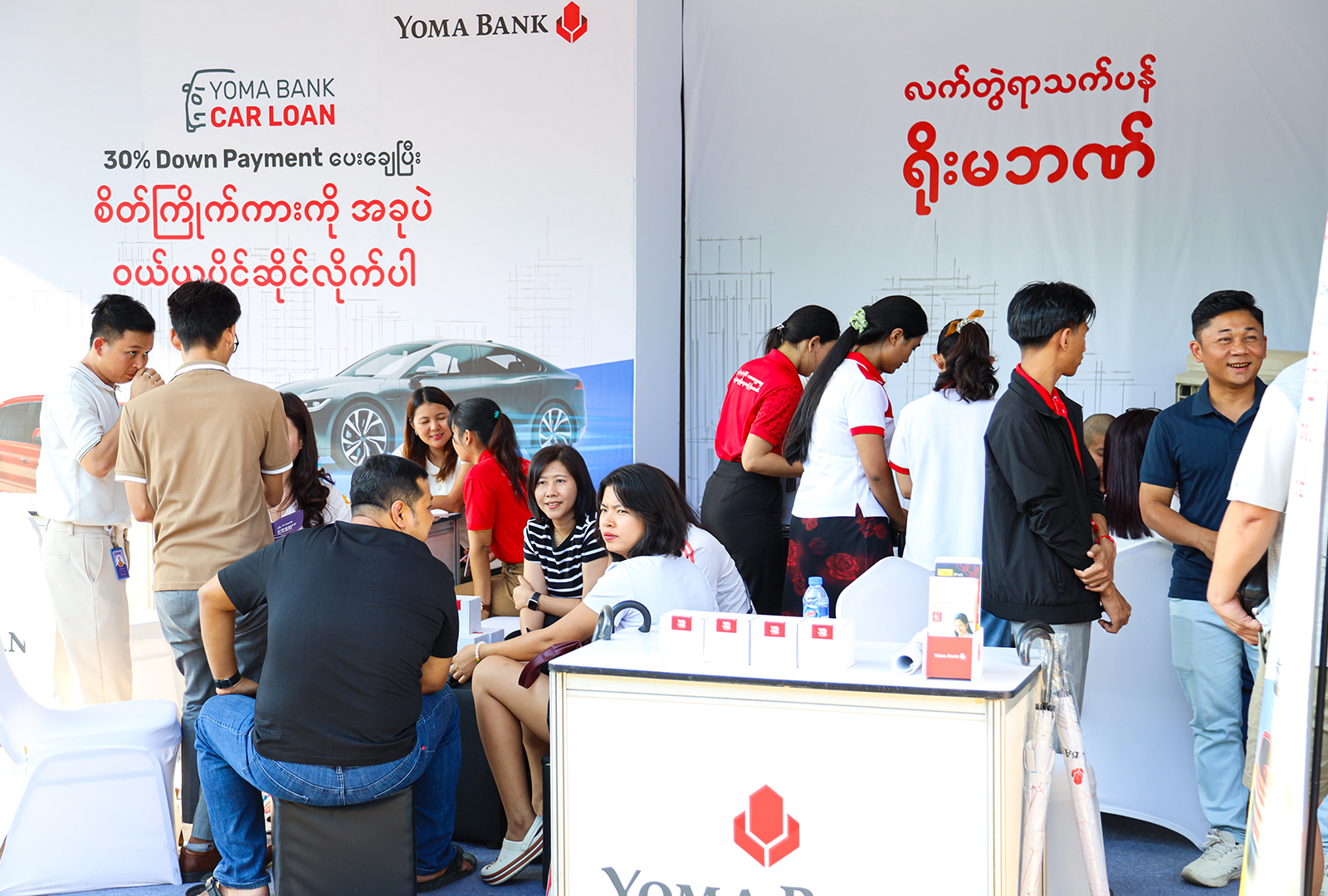 ပွဲနေ့ရက်များအတွင်း ရိုးမဘဏ် Booth ကို လာရောက်လည်ပတ်ကြသော ကားချစ်သူ မိတ်ဆွေများအားလုံးကို ရိုးမဘဏ်၏ Car Loan ဝန်ဆောင်မှုများ၊ ပွဲအထူး Promotion အစီအစဉ်များနှင့် လျှောက်ထားမှုဆိုင်ရာ အကြံဉာဏ်များ ပေးအပ်ခဲ့ပါသည်။ ရိုးမဘဏ်၏ ဝန်ဆောင်မှုများကို စိတ်ဝင်စားစွာ လာရောက်စုံစမ်းမေးမြန်းခဲ့ကြသော ပွဲလာရောက်သူများအားလုံးကိုလည်း အထူးပင် ကျေးဇူးတင်ရှိပါသည်။